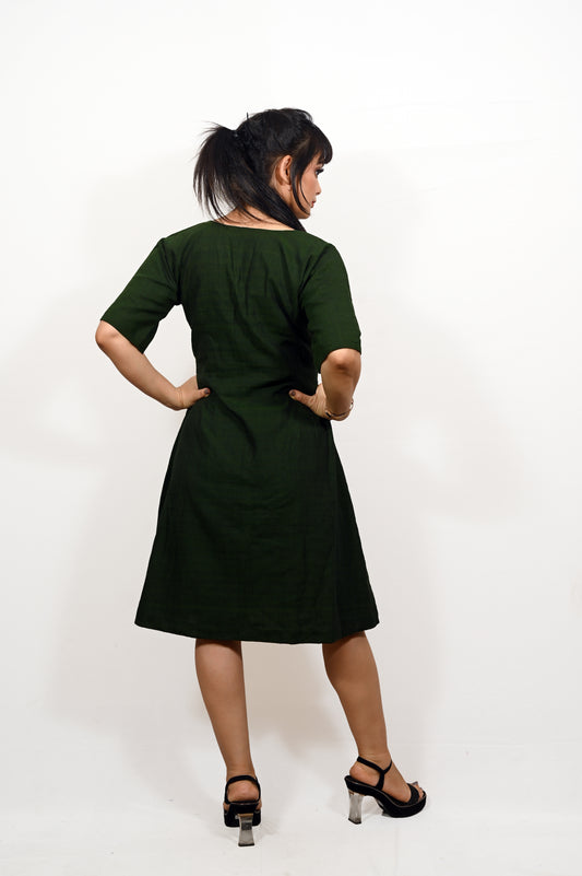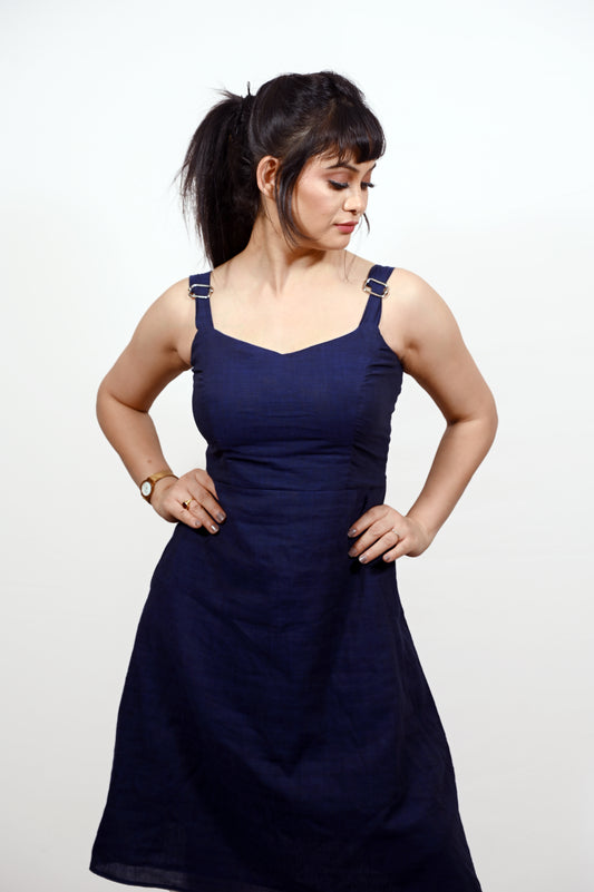 Navy Blue Handloom Elegant Khadi Cotton Dress